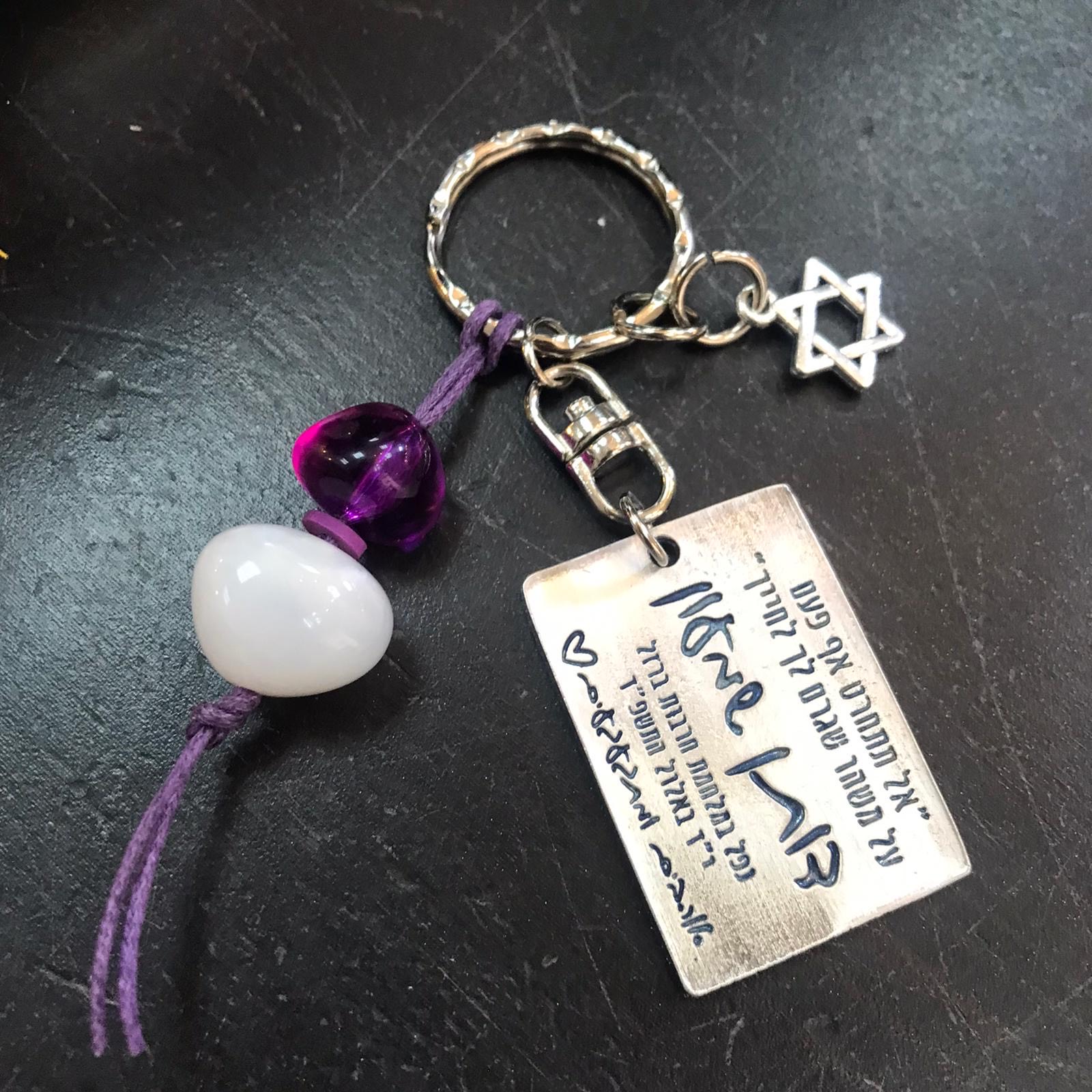 מחזיק מפתחות'אמונה' ממותג- חרוזים ואבנים יקרות ולוגו התנועה