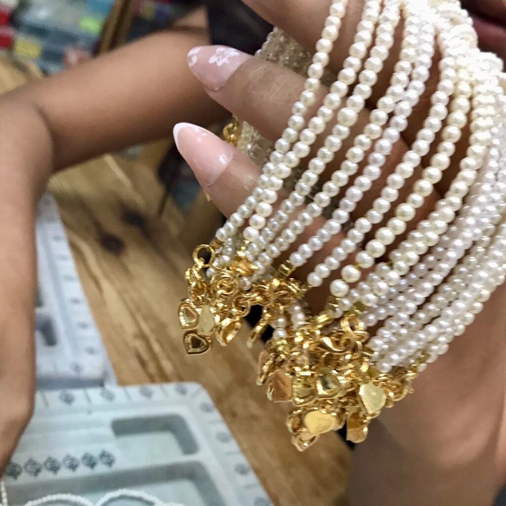 צמידי חרוזי פנינה עם תליון לב קטן מוזהב מתנה חברתית יפה לבת מצווה