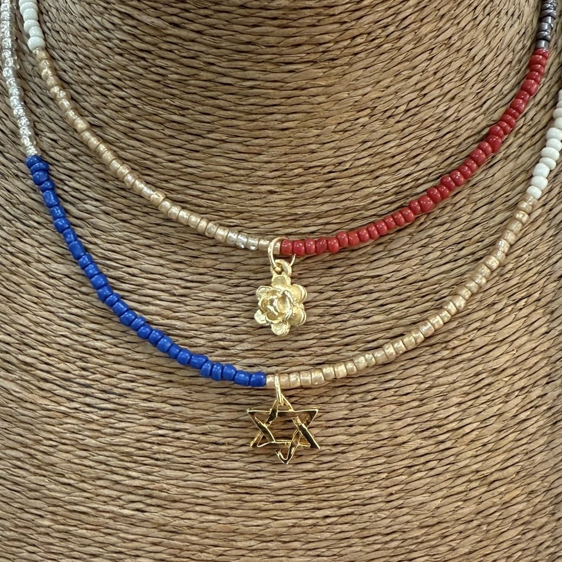 שרשאות ישראל שלי- חרוזים כחול לבן עם תליון מוזהב