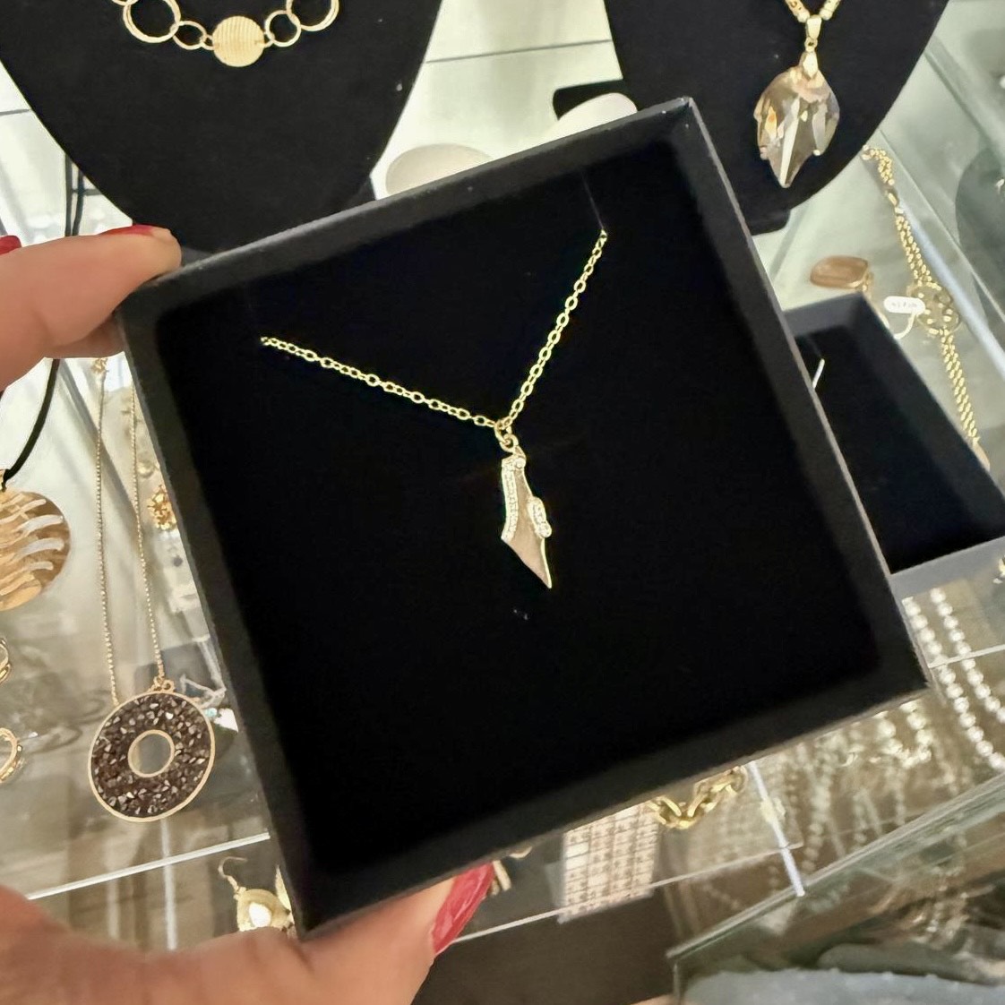 שרשרת ישראל יוקרתית ציפוי זהב עם תליון מפת ישראל משובץ זירקונים