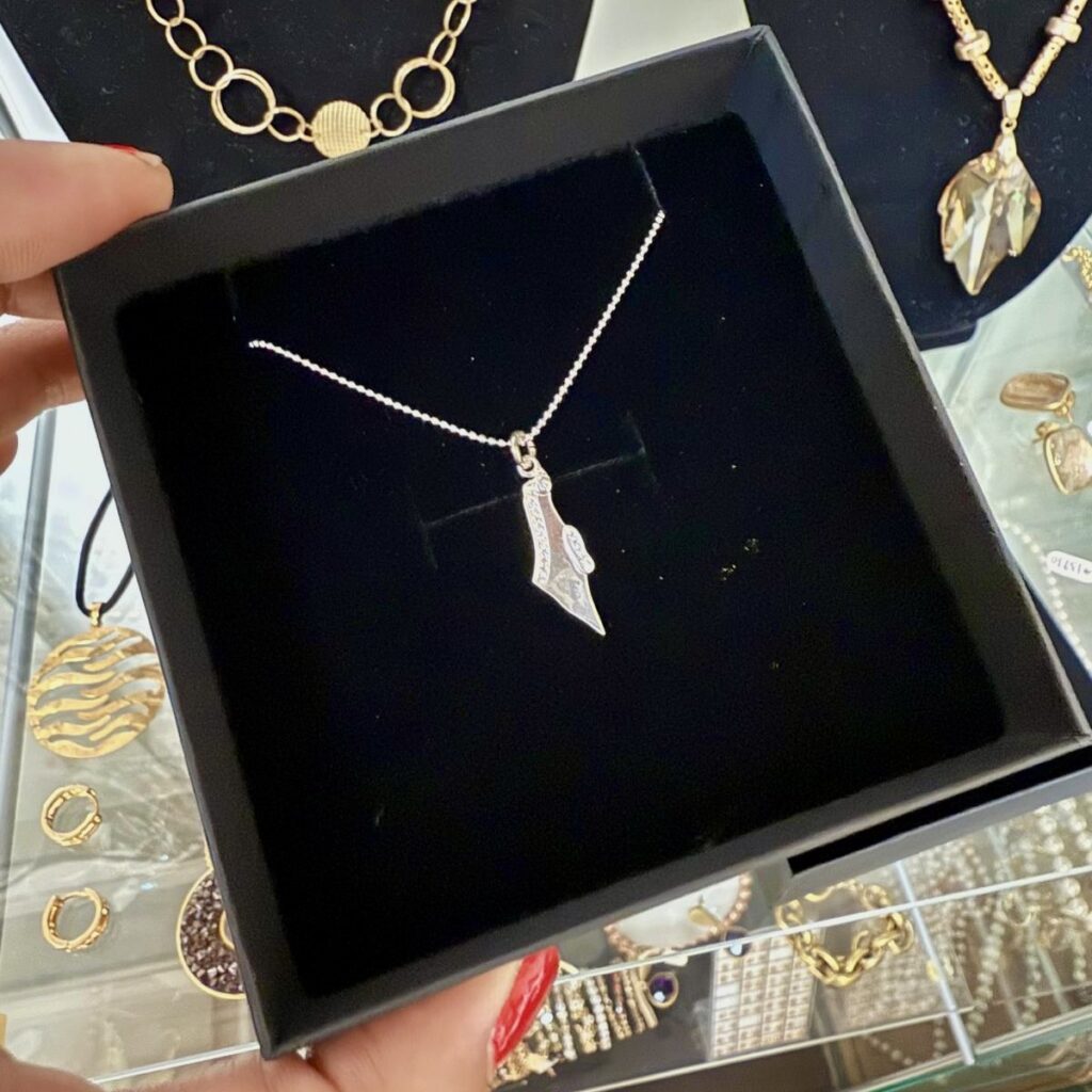 שרשרת ישראל יוקרתית כסף 925 תליון מפת ישראל משובצת זרקונים