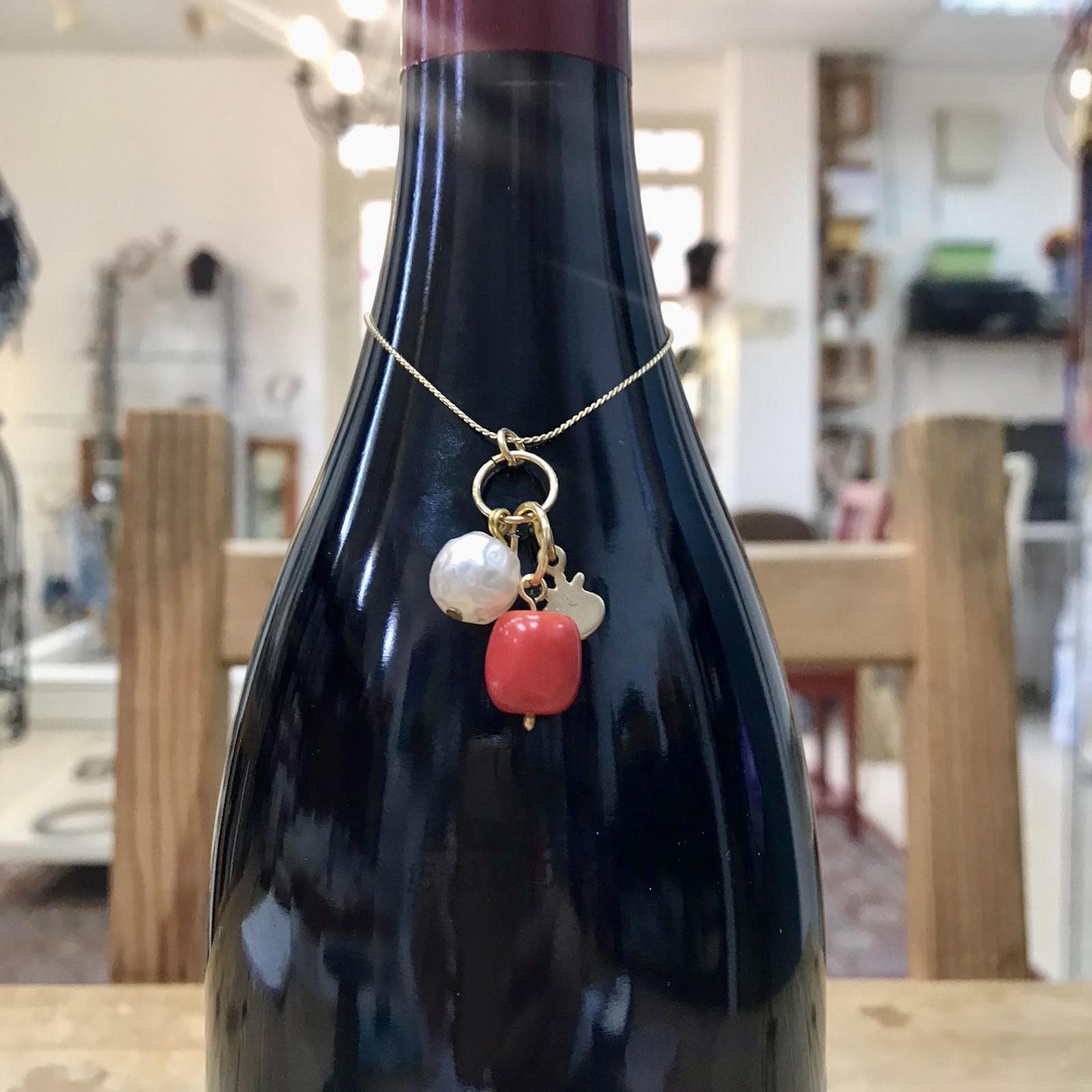 תכשיט ליין - רימון מוזהב אבן קורל וחרוז פנינה מפחות ישראל שלי