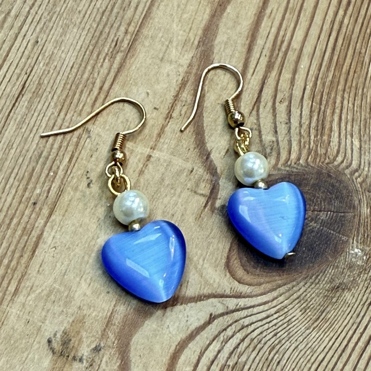 עגילים ישראל שלי- חרוז פנינה ולב כחול זכוכית